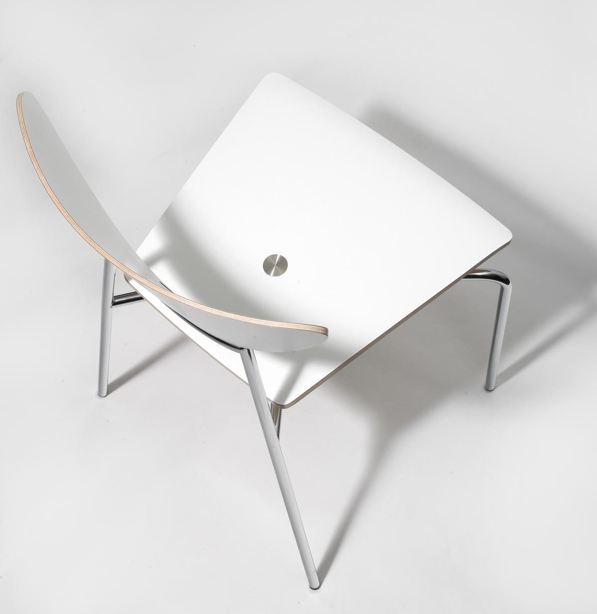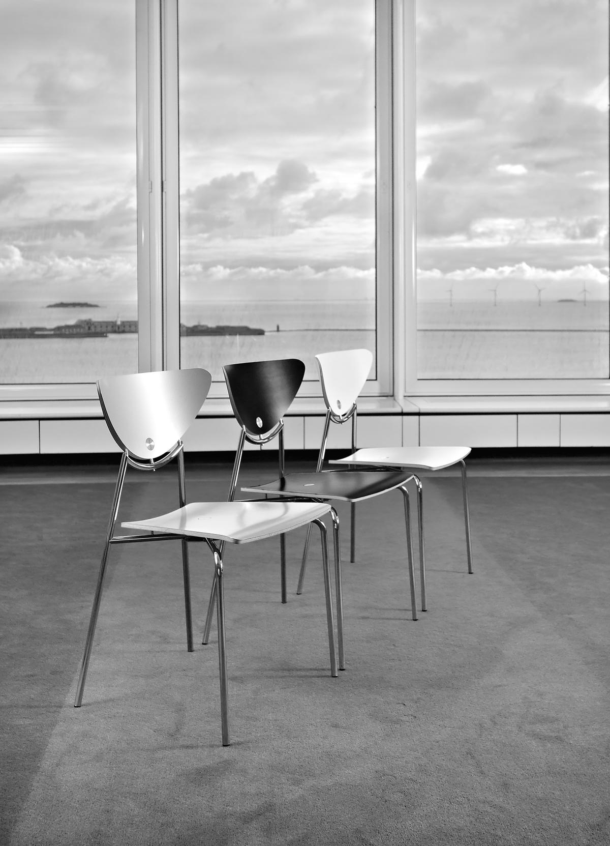 CLOUD is a light stacking chair, having its name from the soft shaped back, hoovering above the significant steel-tube-frame. As clouds over a calm ocean, the back relates to the horizontal plane of a table-top.