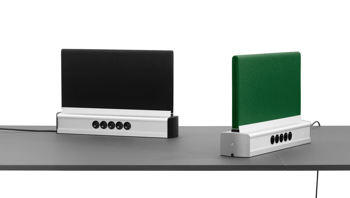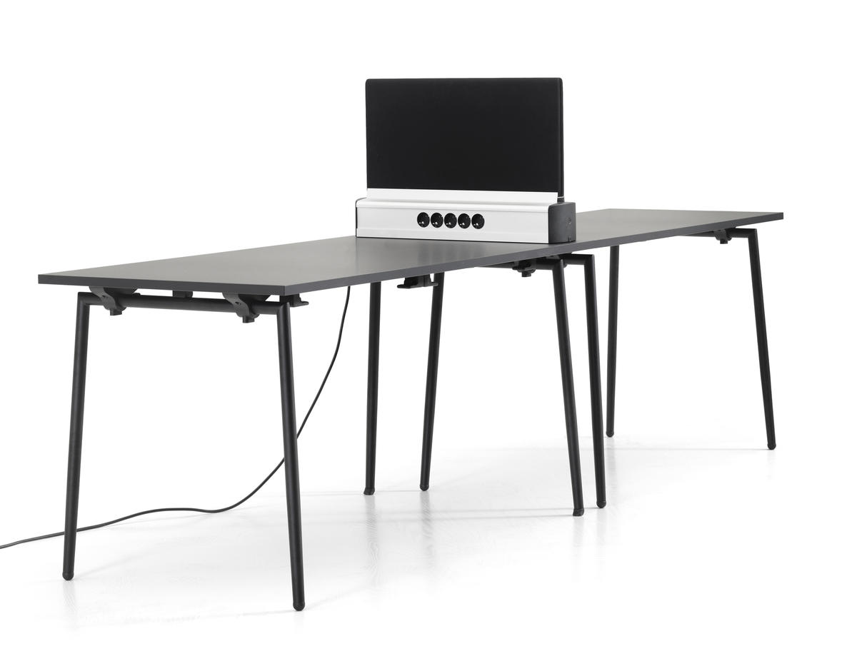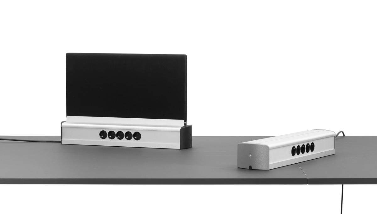 With Worksystem you can build any length you might need, customized by cm, according to size of table. Adapt your wished number of power-outtakes and screen-dividers and create the workplace that you want. A work-system as flexible as the Attach-table!