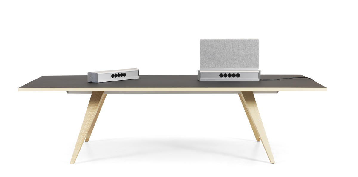 As an extension of the successful table Attach, I - in a close cooperation with Lammhults Product-development-team - have developed a system that can be attached to the table as well as detached from the table. This power supply-system, including acoustic and visual screens, is made to turn the Attach table from a conference table to a workbench system without making any holes or other damages to the table-top.