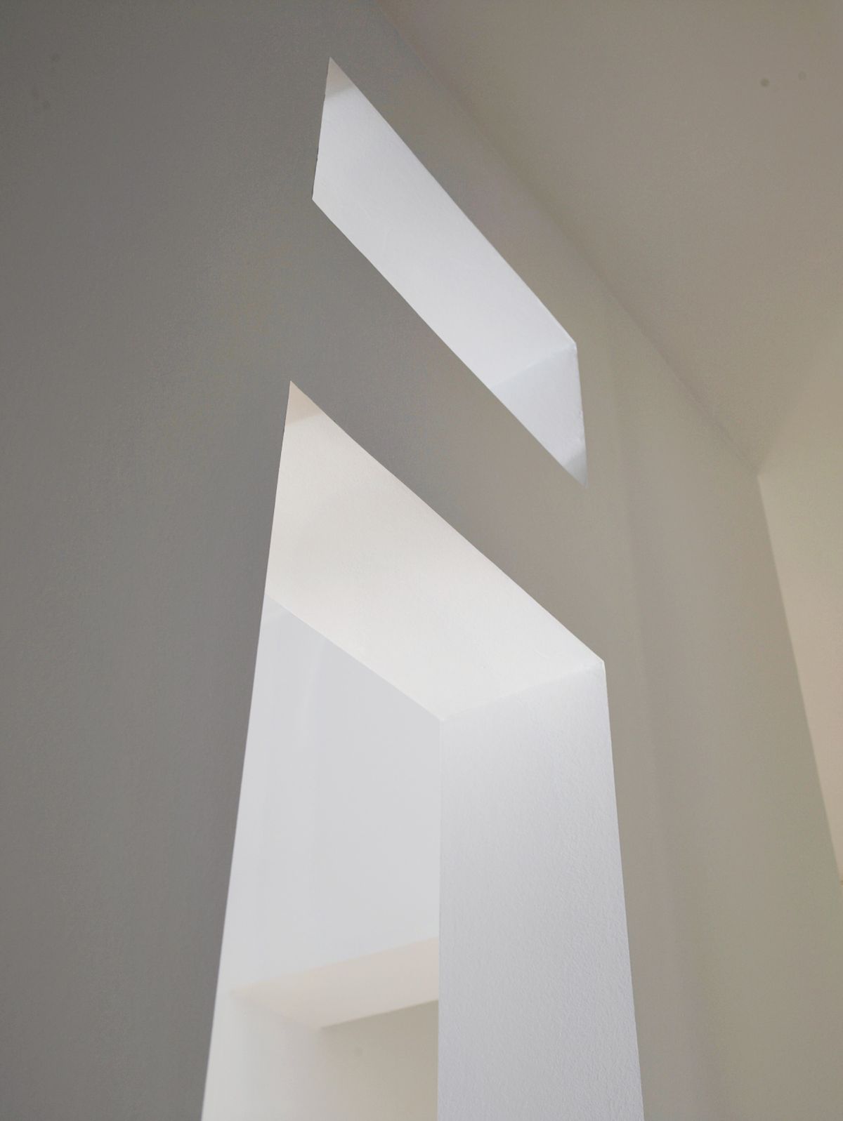 The new holes appear to be simply cut out of the walls, making them a modern contrast to the old building with its stucco-details etc.